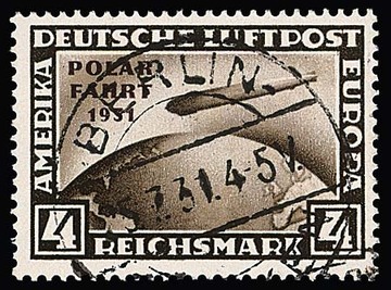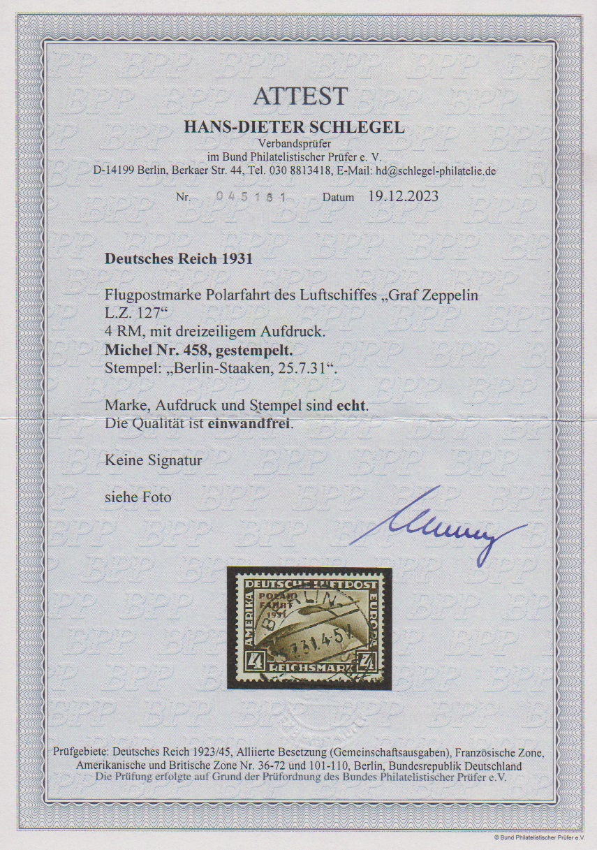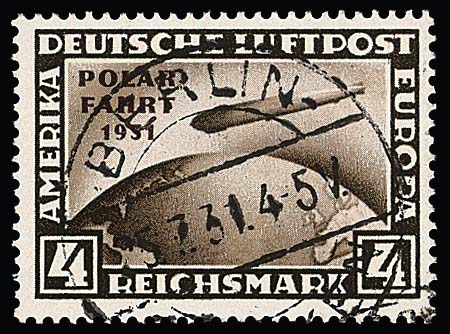 4 RM Polarfahrt zentrisch gestempelt, Attest D. Schlegel. Mi. 900,-