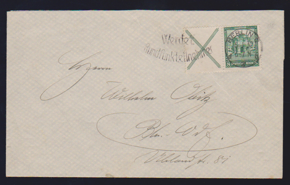 8 Pfg. Nothilfe, Andreaskreuz-Zusammendruck auf portoger. Ortsbrief aus Berlin, Mi. 250,- +