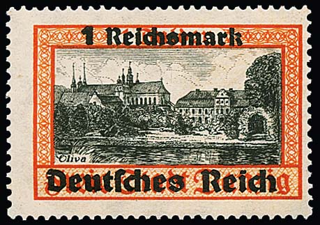 1 RM Danzig-Abschied mit seltenem seitenverkehrtem Wasserzeichen tadellos ungebraucht, Attest D. Schlegel. Mi. 5000,-