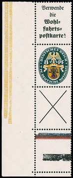 8 Pfg. Nothilfe 1928, tadellos postfrischer senkrechter Zusammendruck mit Reklame und Andreaskreuz, aus der linken unteren Bogenecke mit vierseitig gezähntem Leerfeld, in dieser Form selten! Attest D. Schlegel. Mi. 6000,-