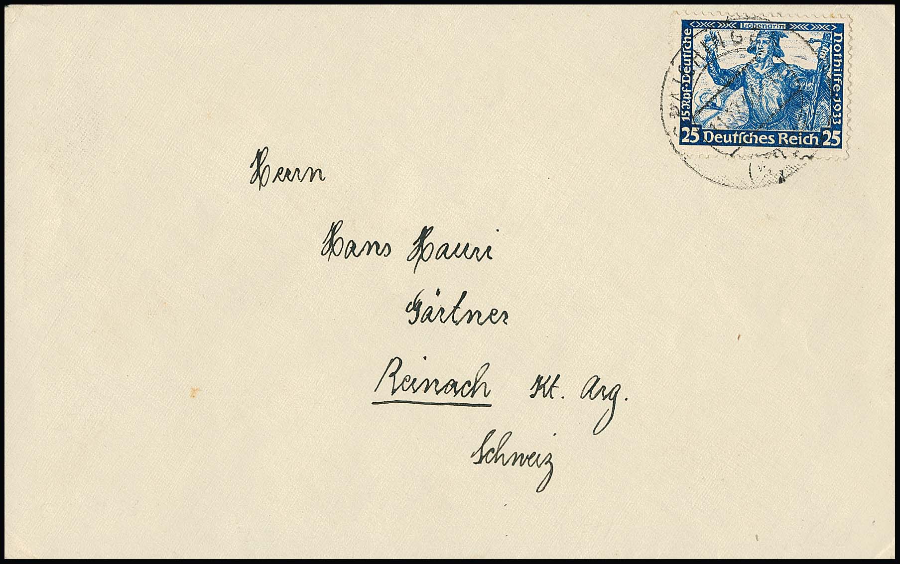 25 Pfg. Wagner als gute Einzelfrankatur auf Auslandsbrief von Spaichingen 1933 in die Schweiz