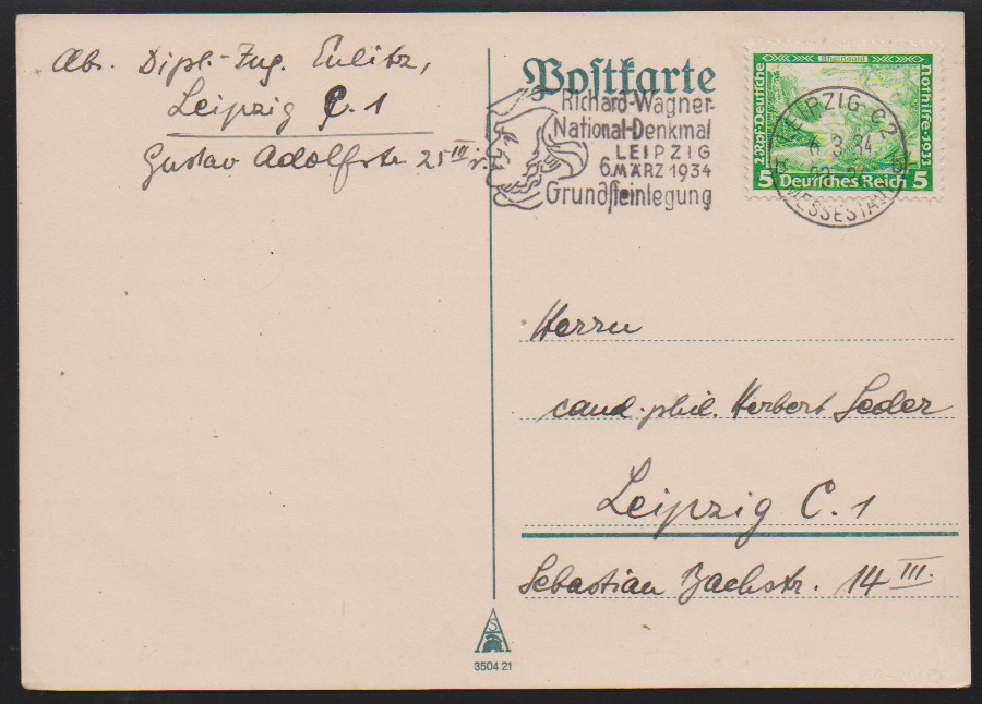 Wagner, drei bessere Belege: 5 Pfg. als EF auf Ortspostkarte aus Leipzig, 4, 6, 12 u. 20 Pfg. auf R-Brief ab Corbach, sowie 25 Pfg. als gute EF auf Auslandsbrief nach Holland