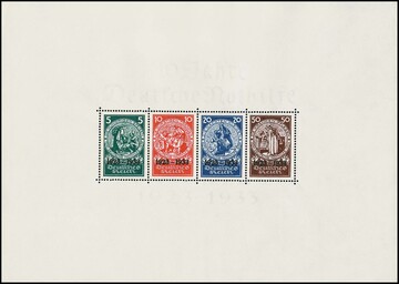 Nothilfe-Block postfrisch mit ganz leichten Papierbügen am Rand (im Original belanglos), Mi. 6000,-, sign. Bühler und Attest D. Schlegel