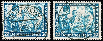 20 Pfg. Wagner, beide Zähnungen, sowie 40 Pfg., je zentrisch gestempelt, sign. D. Schlegel. Mi. 550,-