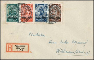 Nothilfe-Block, Herzstück mit kleinem Blockrand auf Orts-R-Brief aus Wildemann (bekannte "Kosmund"-Korrespondenz). Mi. lose gestempelt 2000,-