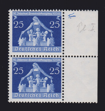 25 Pfg. Gemeindekongreß im Randpaar (einmal Plattenfehler I) sowie 25 Pfg. WHW mit guter senkrechter Gummirifellung, je postfrisch, sign. Schlegel. Mi. 360,-