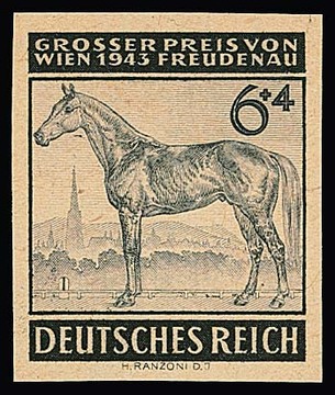 6 + 4 Pfg. Grosser Preis von Wien, geschnittener Probedruck, sign. Schlegel, Ludin. Mi. 250,-