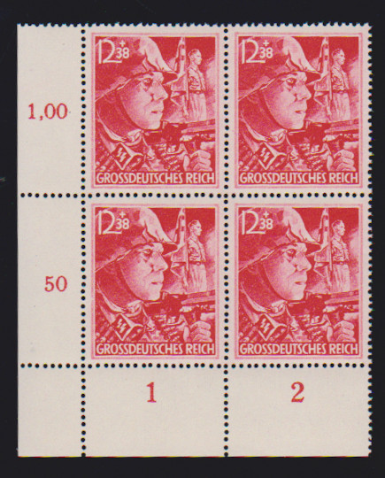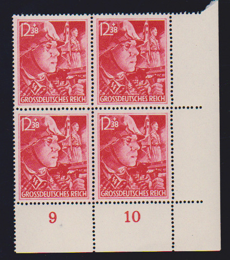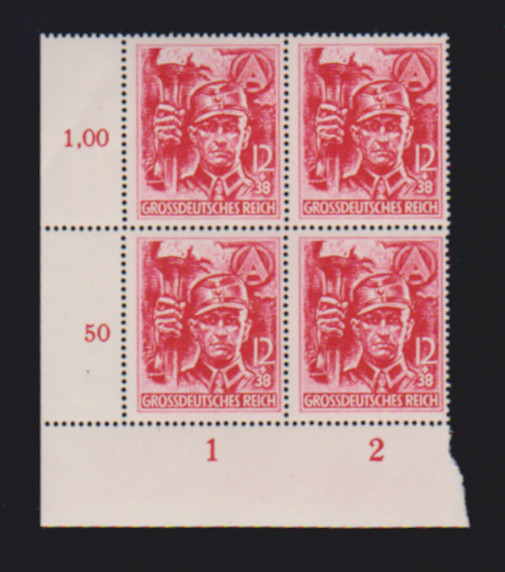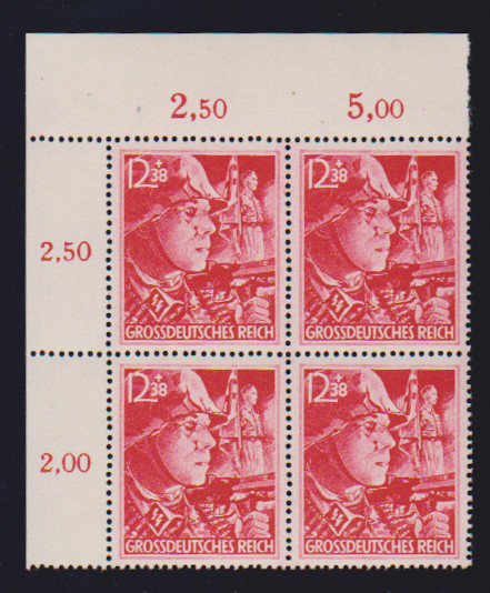 SA/SS, alle vier verschiedenen Bogenecken je als postfrische Eckrand-Viererblöcke, die Gummierung ist typisch für die Ausgabe, seltenes Angebot, Mi. der losen Marken 1280,- +