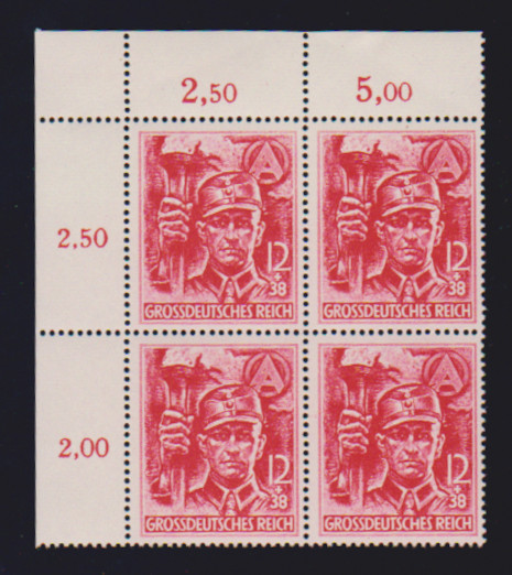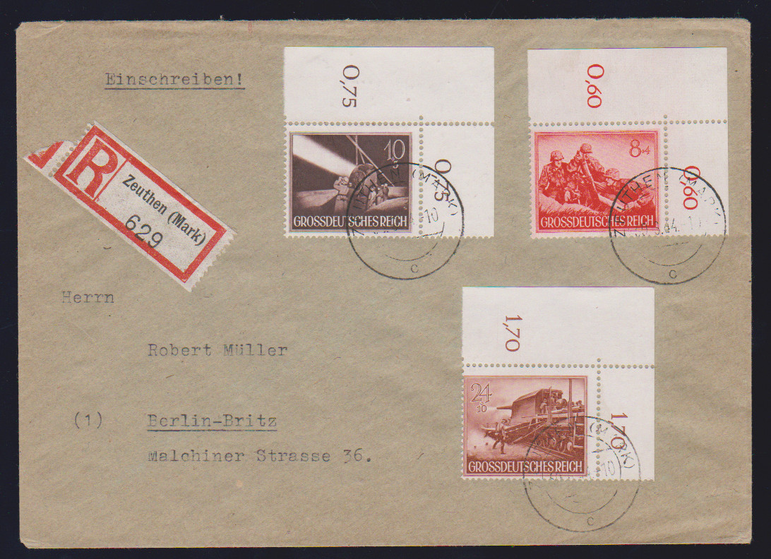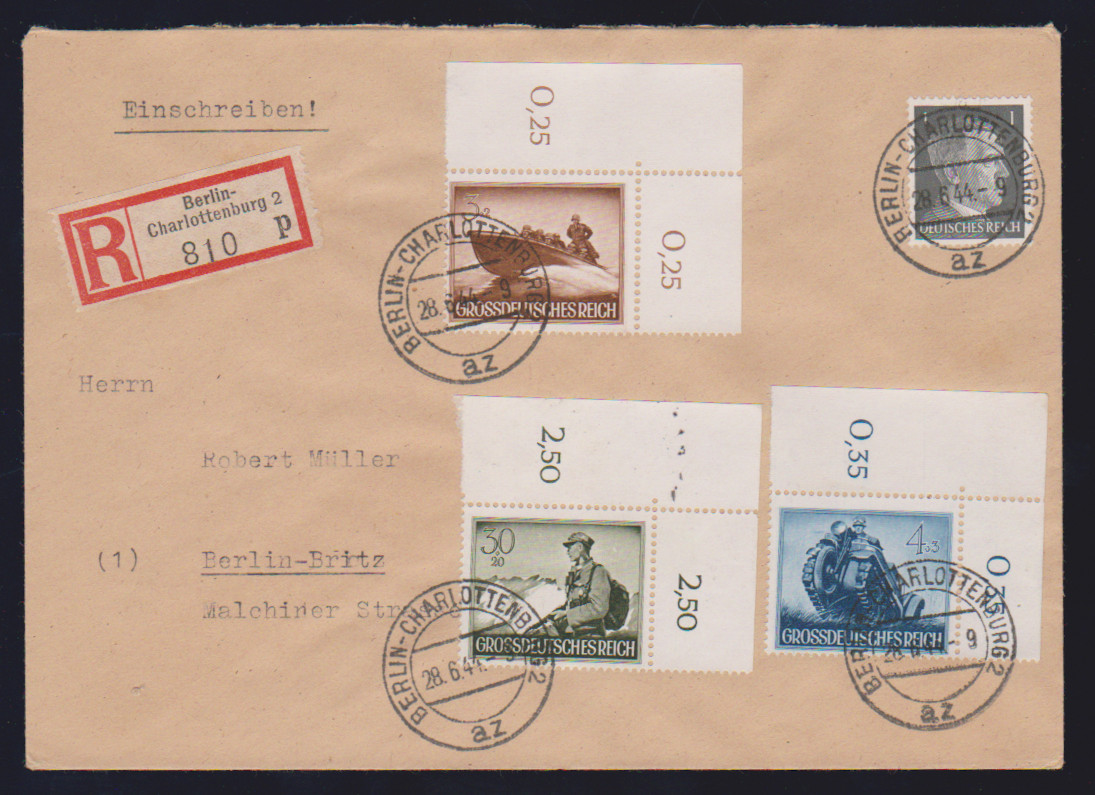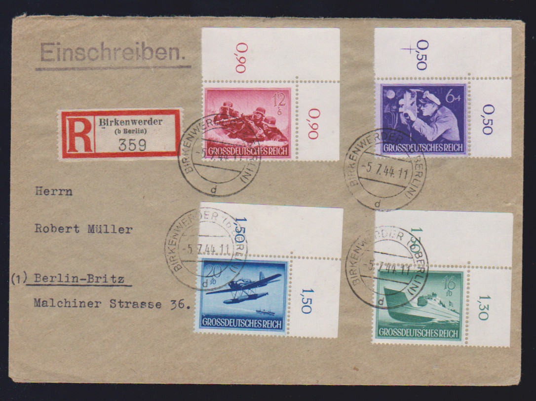 Wehrmacht II komplett einheitlich aus der linken oberen Bogenecke auf vier portogerechten R-Briefen