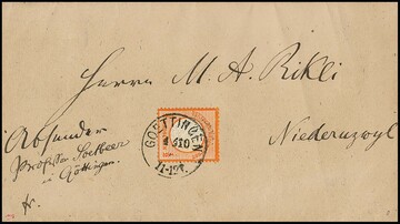 1/2 Gr. orange einzeln auf Pracht-Auslands-Drucksache von Göttingen ins Schweizer Niederuzwyl