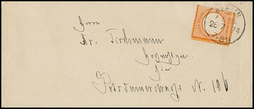 1/2 Gr. orange (teils übliche Zähnung) je einzeln auf zwei Berliner Ortsbriefen, u.a. K1 "Berlin P.E. 29"