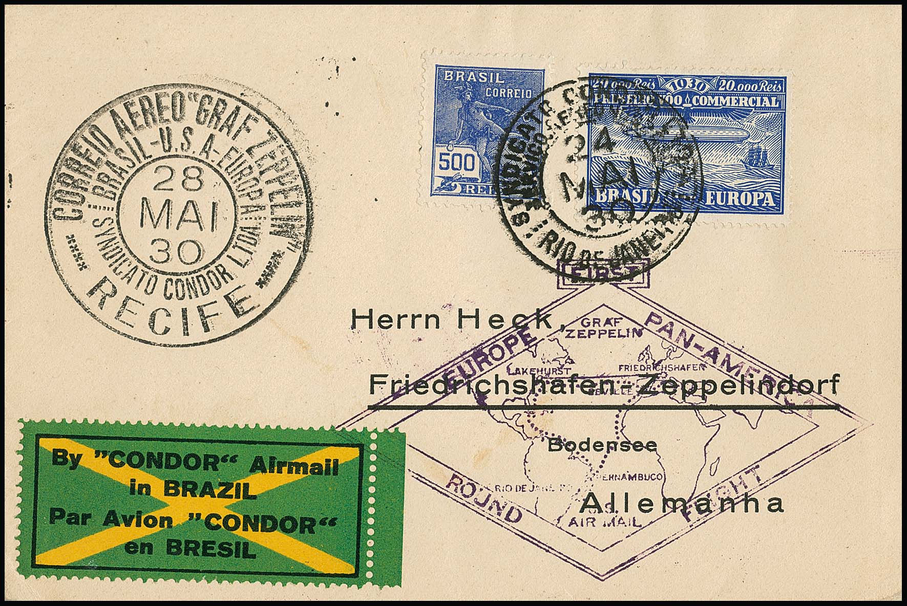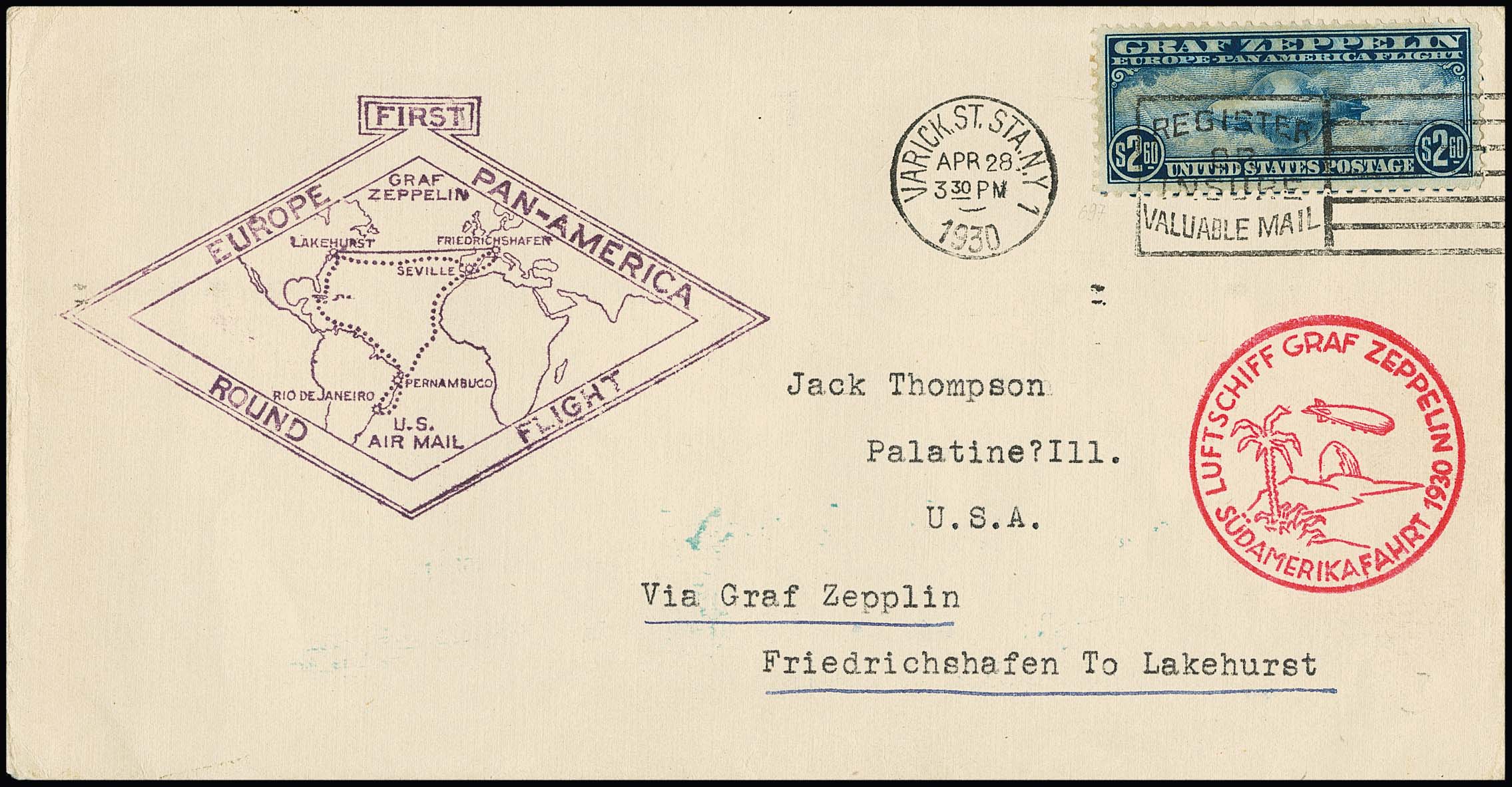 1. SAF 1930, Brief USA-Post mit 65 C. Zeppelin sowie deutschem und amerikanischem Bestätigungsstempel