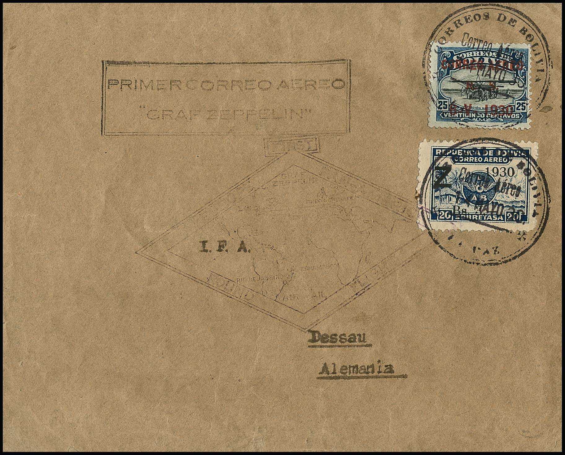 SAF 1930, Heimfahrt, Brief Bolivianische Post mit u.a. Zeppelinmarke 3 Bol. bis Dessau