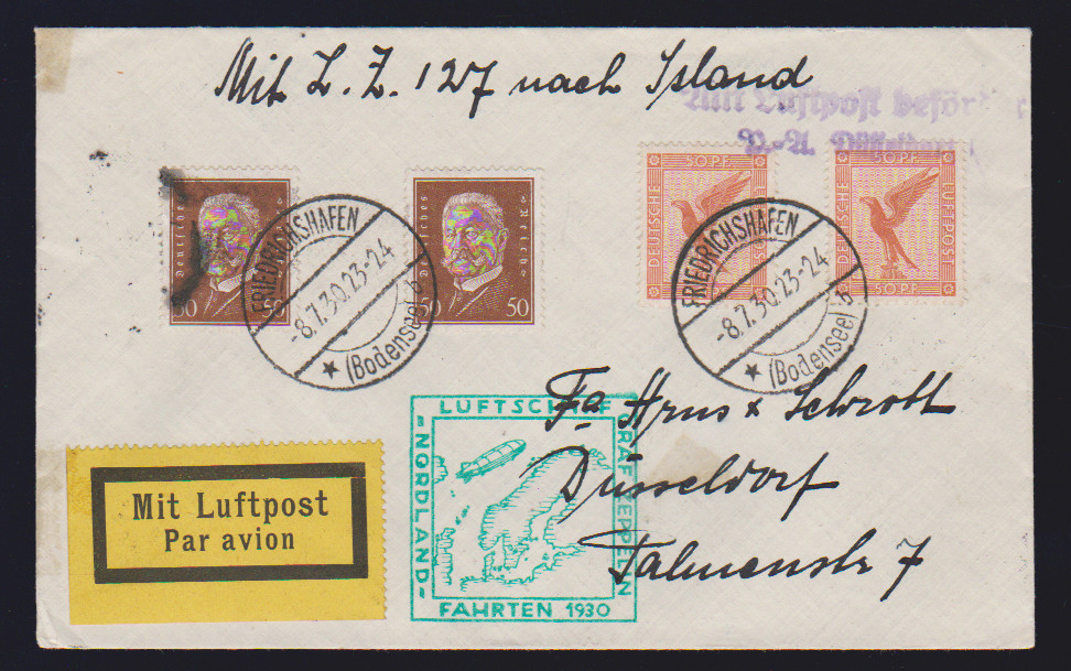 Spitzbergenfahrt 1930, Brief (leichte Spuren) Auflieferung Friedrichshafen