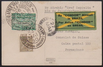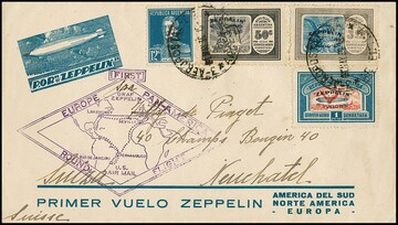 SAF 1930, Heimfahrt, Brief Argentinische Post mit Zeppelinmarken 50 C., 1 Peso und 3,60 Pes. (teils typ. Zhg.) bis Neuchatel