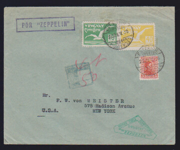 SAF 1930, Heimfahrt, Brief Uruguayische Post bis Lakehurst
