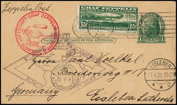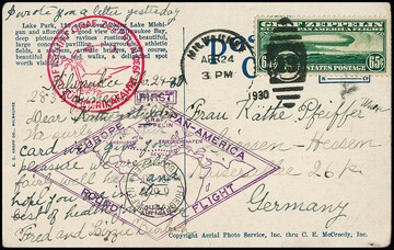 SAF 1930, Heimfahrt, Karte USA-Post mit Zeppelinmarke 65 C., Sieger + 375,-