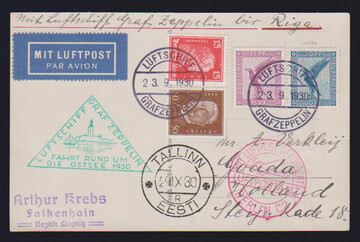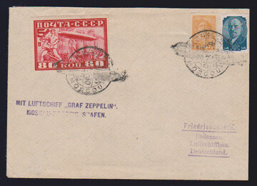 Rußlandfahrt, Brief Rußland-Post von der Rückfahrt mit u.a. russ. Zeppelinmarke zu 80 Kop.
