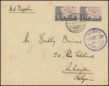 Ostseefahrt 1930, Finnische Post, Brief mit Paar Finnland 10 M. Zeppelin, leichte Gebrauchsspuren