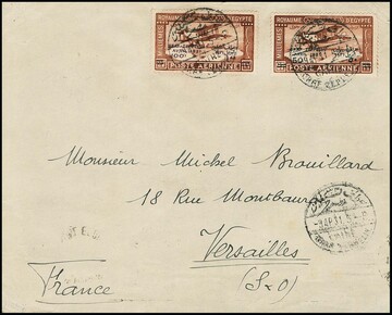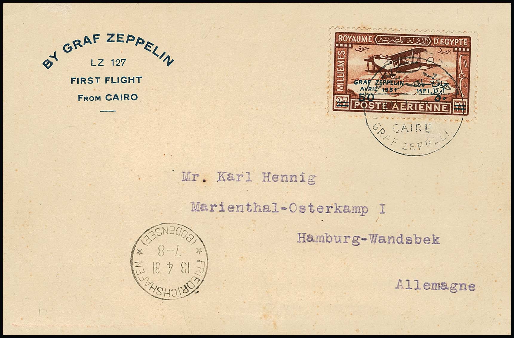 Landungsfahrt nach Ägypten 1931, zwei Briefe Ägyptische Post je mit Stempel von Kairo, einmal Sondermarke mit Aufdruckfehler "1951", der andere Brief mit beiden Marken