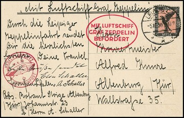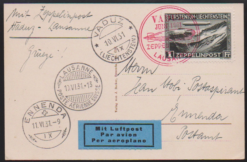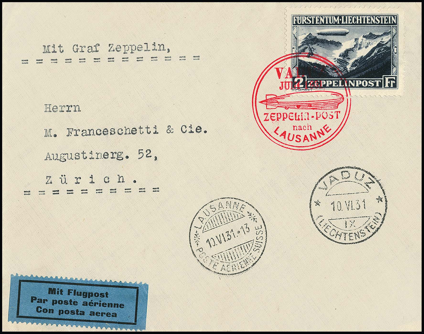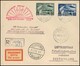 Fahrt nach Vaduz, Brief und Karte Liechtensteinische Post mit 1 bzw. 2 Fr. Zeppelin