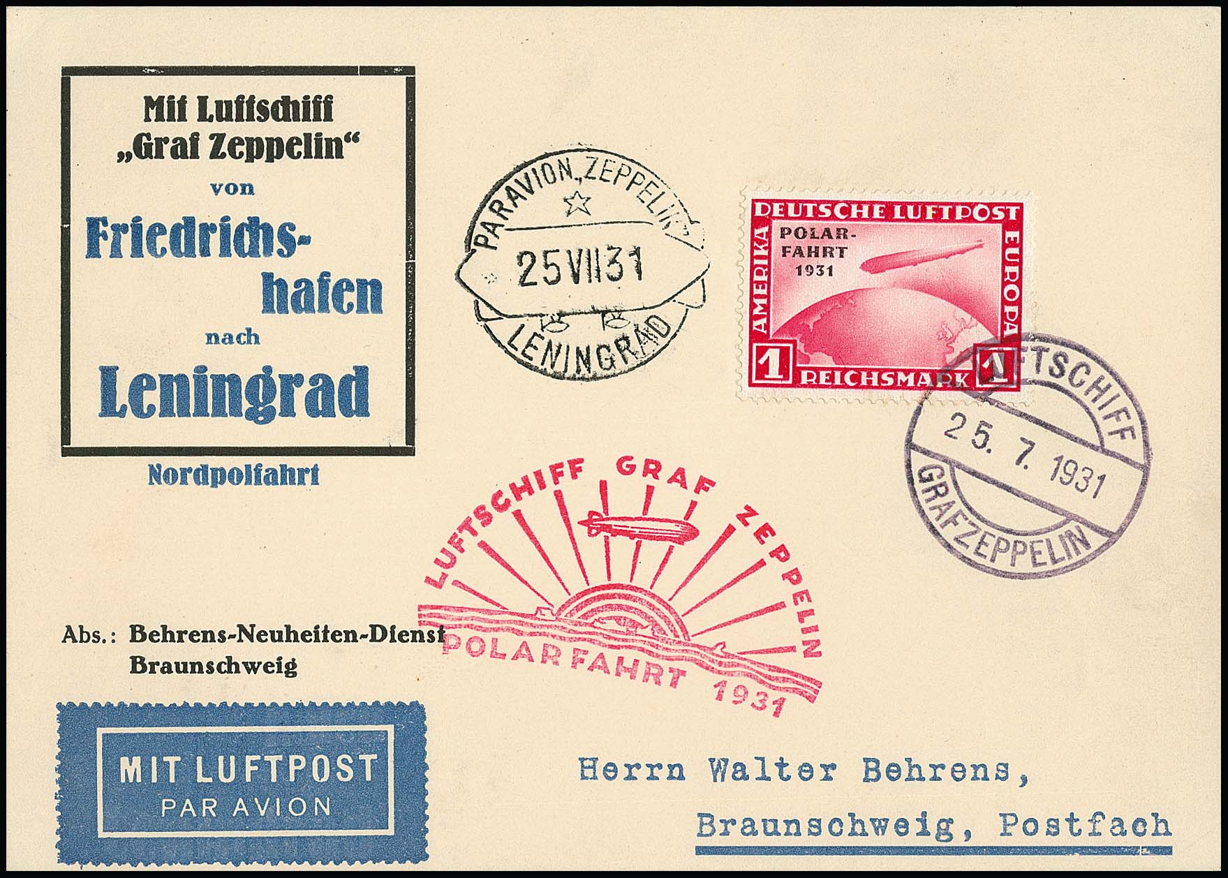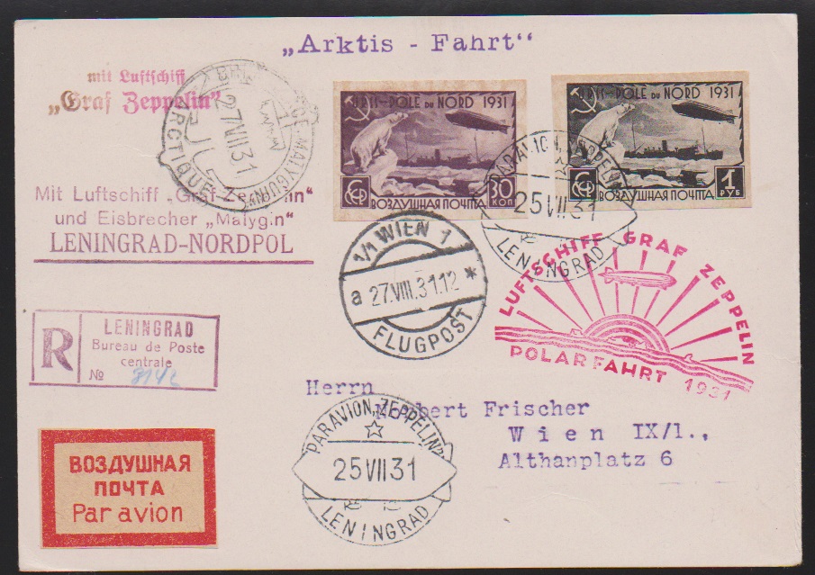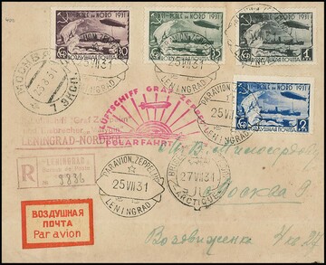 Polarfahrt, Einschreibebrief Russische Post mit kompletter gezähnter Zeppelinserie ab Leningrad, Sonderstempel "Arctique", Sieger + 1500,-