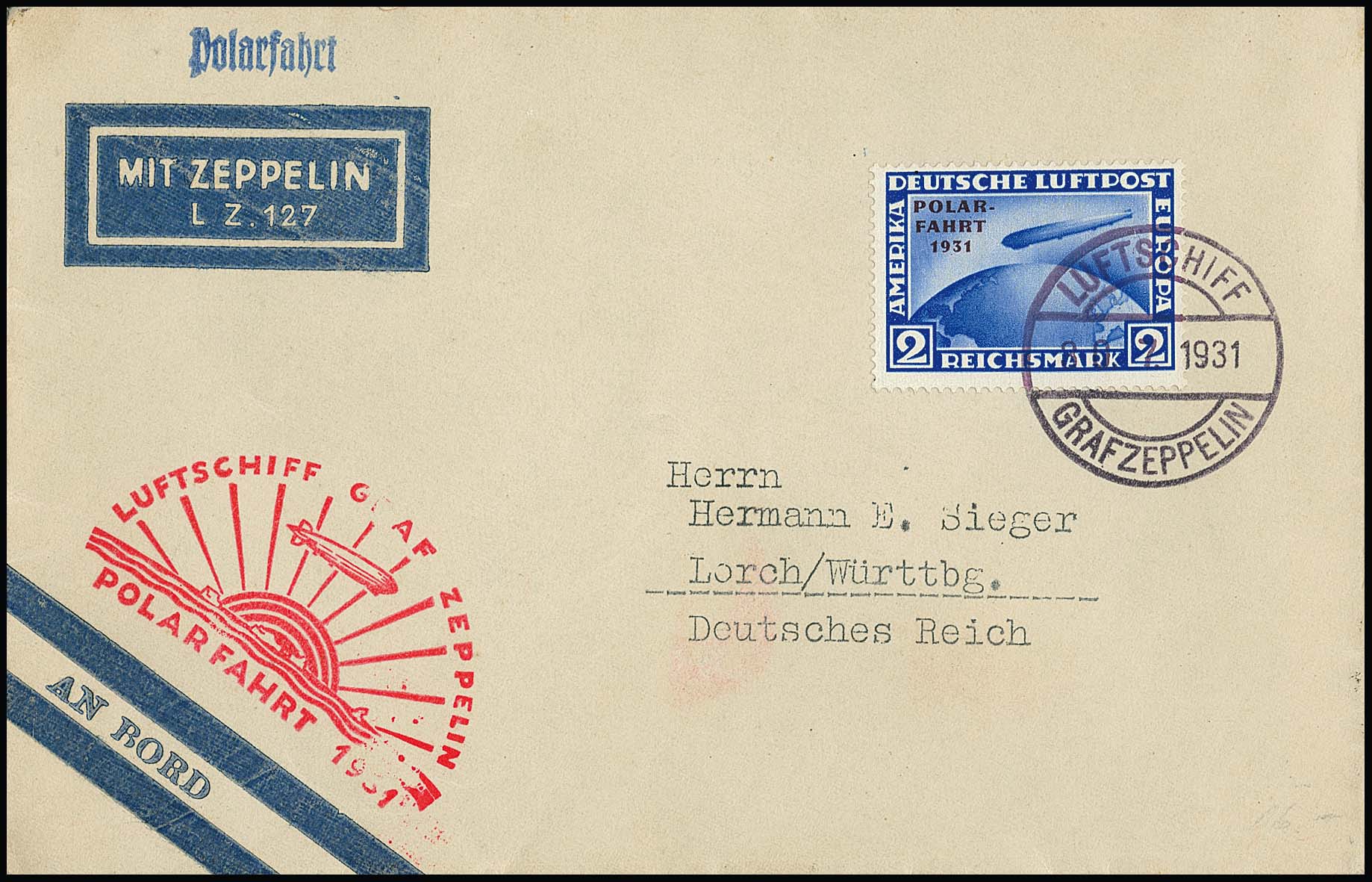 Polarfahrt, Bordpostbrief von der Rückfahrt mit 2 RM Polarfahrt bis Friedrichshafen, Sieger + 750,-, sign. Schlegel