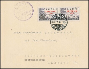 Ostseefahrt, Brief Finnische Post mit zwei Zeppelinmarken zu 10 M., Sieger + 675,-