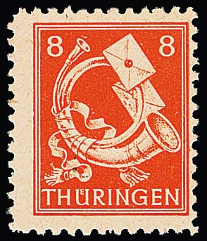 8 Pfg. rotorange auf Papier "z1" mit steil steigender Papierstreifung tadellos postfrisch. Diese Papiervariante zählt zu den großen Seltenheiten Thüringens, wahrscheinlich wurde nur ein Bogen hergestellt, Attest Jasch. Mi. 3600,-