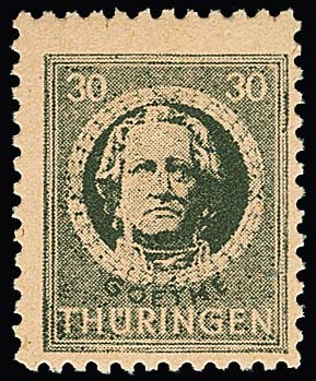 30 Pfg. olivgrau auf guter Papiersorte "r" (dickes, gelbliches Papier mit grober Netzstruktur) tadellos postfrisch, eine der seltensten Papiersorten dieser Ausgabe, wahrscheinlich nur ein oder zwei Bogen hergestellt, Attest Jasch. Mi. 2700,-