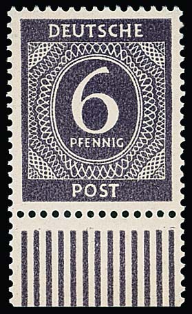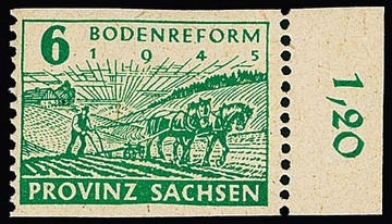 6 Pfg. Bodenreform, lebhaftgrün mit nachträglicher senkrechter Zähnung von Wittenberg tadellos postfrisch vom rechten Bogenrand, Attest Jasch. Eine seltene Marke! Mi. 1500,-