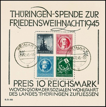 Weihnachtsblock tadellos gestempelt "Weimar", Attest Ströh "echt und einwandfrei". Mi. 4000,-