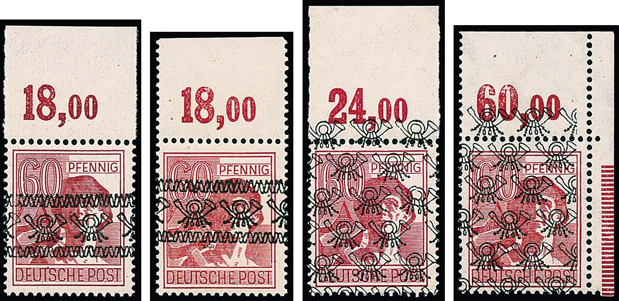 Arbeiter, sowohl Band- als auch Netzaufdruck kopfstehend komplett postfrisch, sign. Schlegel. Mi. 660,-