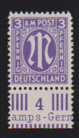 3 Pfg. in guter Zähnung L11 1/2 als postfrisches Unterrandstück, Attestkopie Schlegel für zerteilten Viererblock. Mi. 500,-