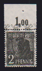 2 Pfg. schwarz, Netzaufdruck, als postfrisches Plattendruck-Oberrandstück, ndgz, Fotoexp. Bernhöft. Mi. 250,-