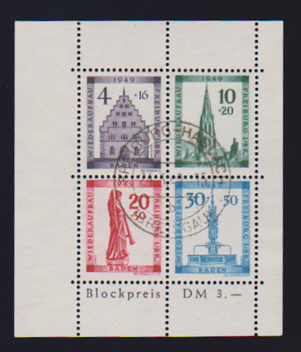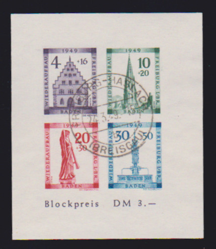Freiburg-Blockpaar mit klaren Rundstempeln "Freiburg-Haslach" vom Ersttag, Fotoexp. Straub. Mi. 140,-
