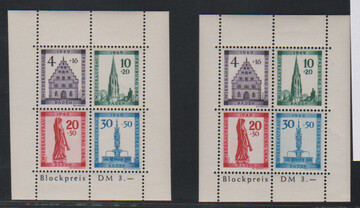 Rotkreuz-Blöcke mit Plattenfehler I (20 Pfg. "Sirene am Sockel") und IV je postfrisch, Mi. 400,-