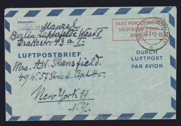 30 Pfg. Rotaufdruck als EF auf Auslandsbrief von Berlin-Schöneberg in die USA