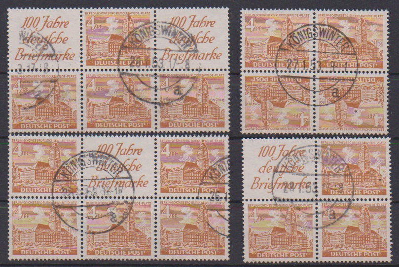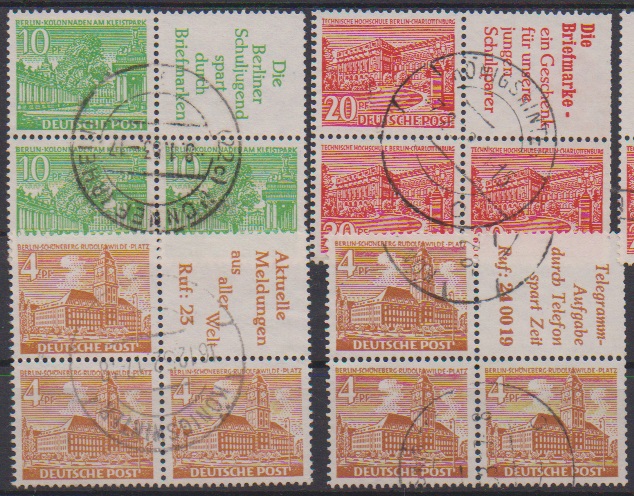 Bauten, sieben verschiedene Zusammendrucke gestempelt, u.a. W17, 23, 25, 31, sowie S5 und S7. Mi. 790,-