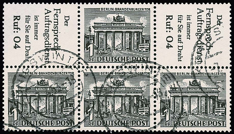 1 und 4 Pfg. Bauten, Zusammendrucke W1, 2, 4, 5, 6, 8 sowie SK1/2 je gestempelt, Mi. 325,-