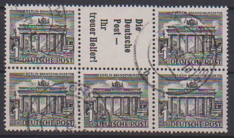 1 Pfg. Bauten, zwei gestempelte Zusammendruck-Sechserblöcke mit W38 bzw. W40 gestempelt, Mi. 280,-