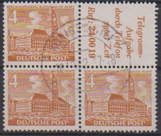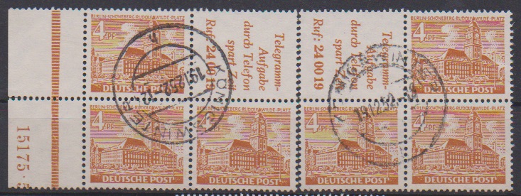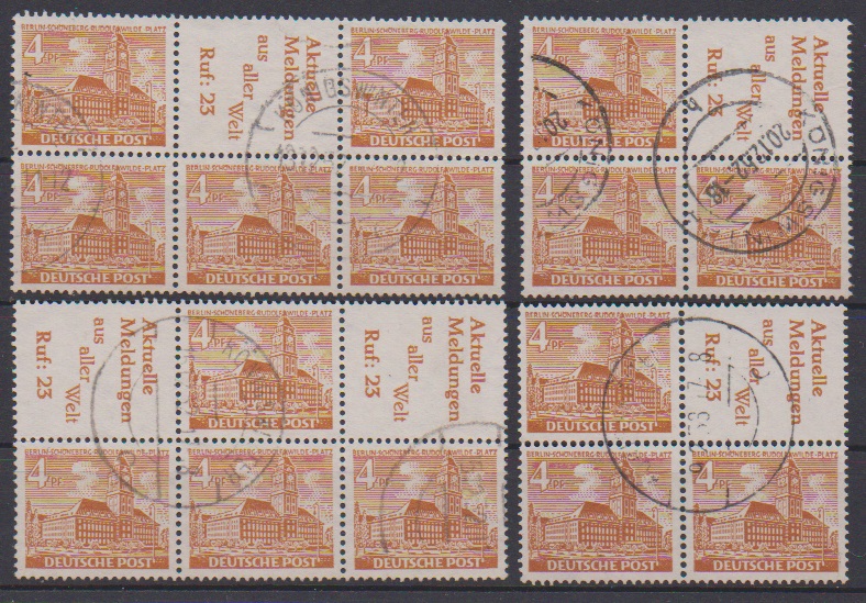 4 Pfg. Bauten, acht gestempelte Zusammendruck-Einheiten mit W25, 26, 28, 29, 31, 32 sowie S7/8. Mi. 1125,-