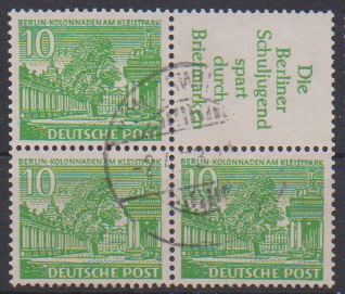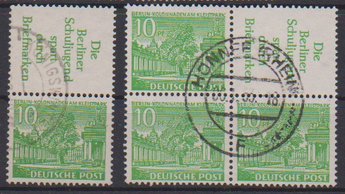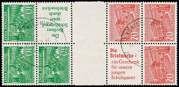 10 und 20 Pfg. Bauten, Kehr-Zwischensteg-Zusammendruck-Einheit mit SKZ3 und 4 gestempelt, Mi. 500,-