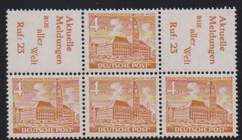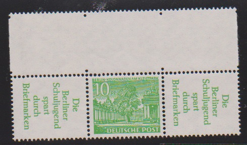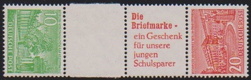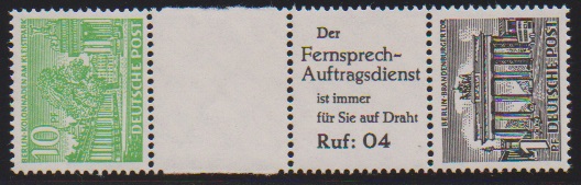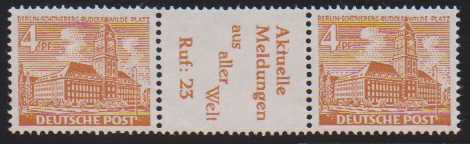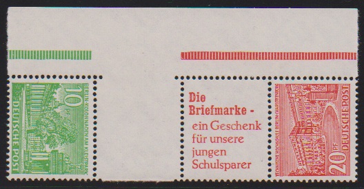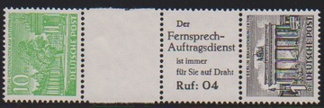 10 und 1 Pfg. Bauten, Zwischensteg-Reklame-Zusammendruck SZ6 postfrisch. Mi. 190,-