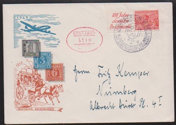 4, 10 u. 20 Pfg., je waagerechte Zusammendrucke "100 Jahre deutsche Briefmarke" auf FDCs. Mi. 260,-