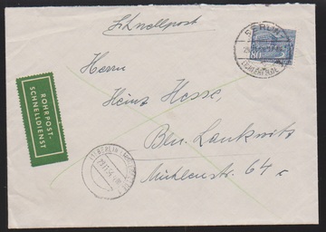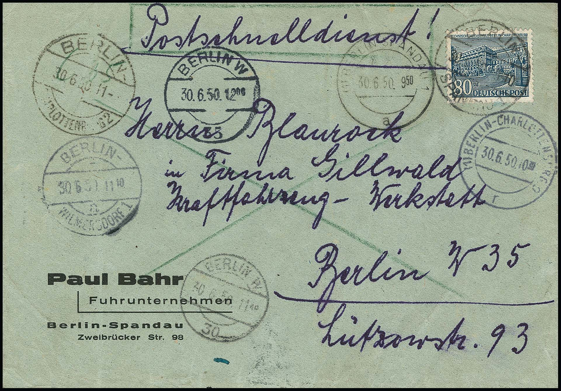 80 Pfg., drei Einzelfrankaturen auf Postschnelldienst-Ortsbriefen (übliche leichte Gebrauchsspuren)