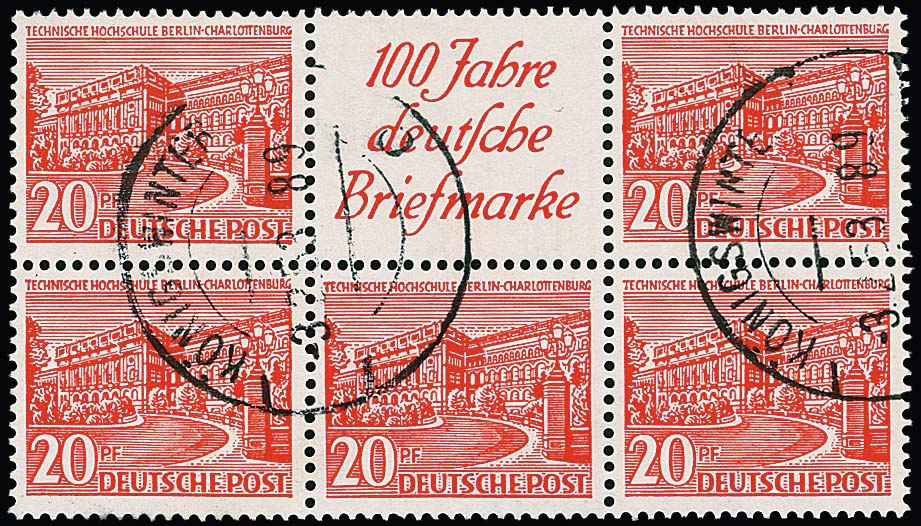20 Pfg. Bauten, fünf gestempelte Zusammendrucke, W13 bis 16 und S4, Mi. 2080,-