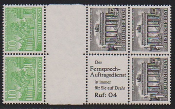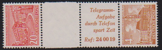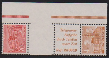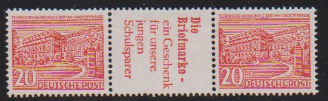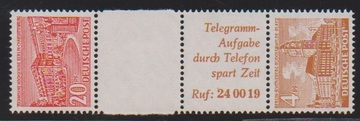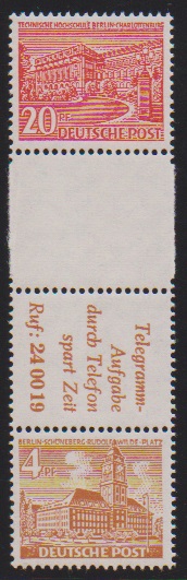 20 und 4 Pfg. Bauten, Reklame-Zwischensteg-Zusammendruck SZ5 postfrisch. Mi. 190,-