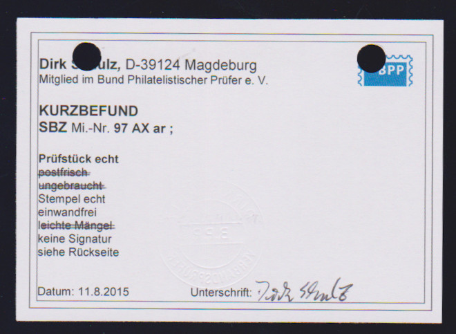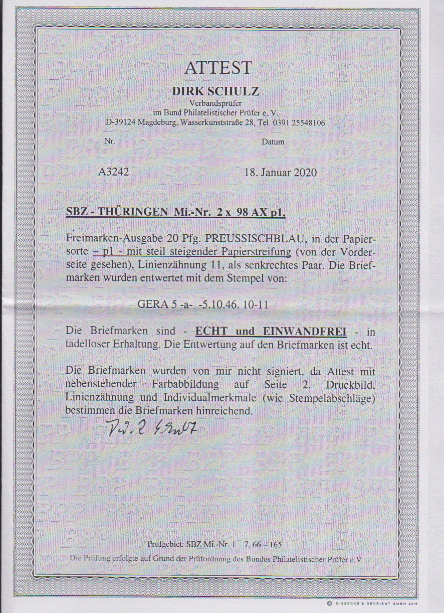 Thüringen, 15 gestempelte Farben, alle tiefst BPP-gepr. (Jasch, Schulz, Ströh), inkl. Nr. 93AYz2, 95AYbz1/2, 97AX in ar und bp2, 97AY in az1/2, bz1/2, by, 99AYbz2, sowie BX in au, at und az2. Mi. 1087,-, da z.B. vier Bogenecken enthalten
