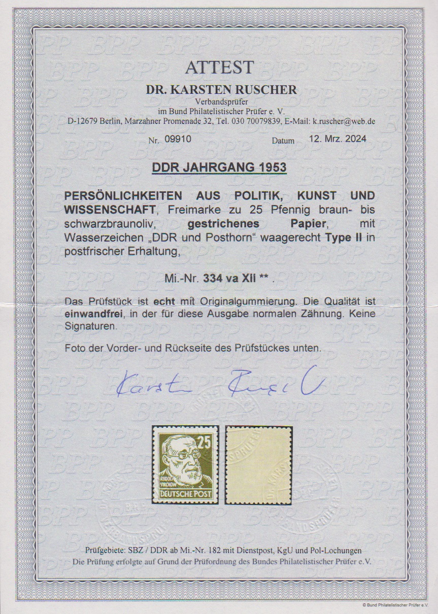 25 Pfg. Köpfe in guter Variante postfrisch, Attest Ruscher. Mi. 1000,-